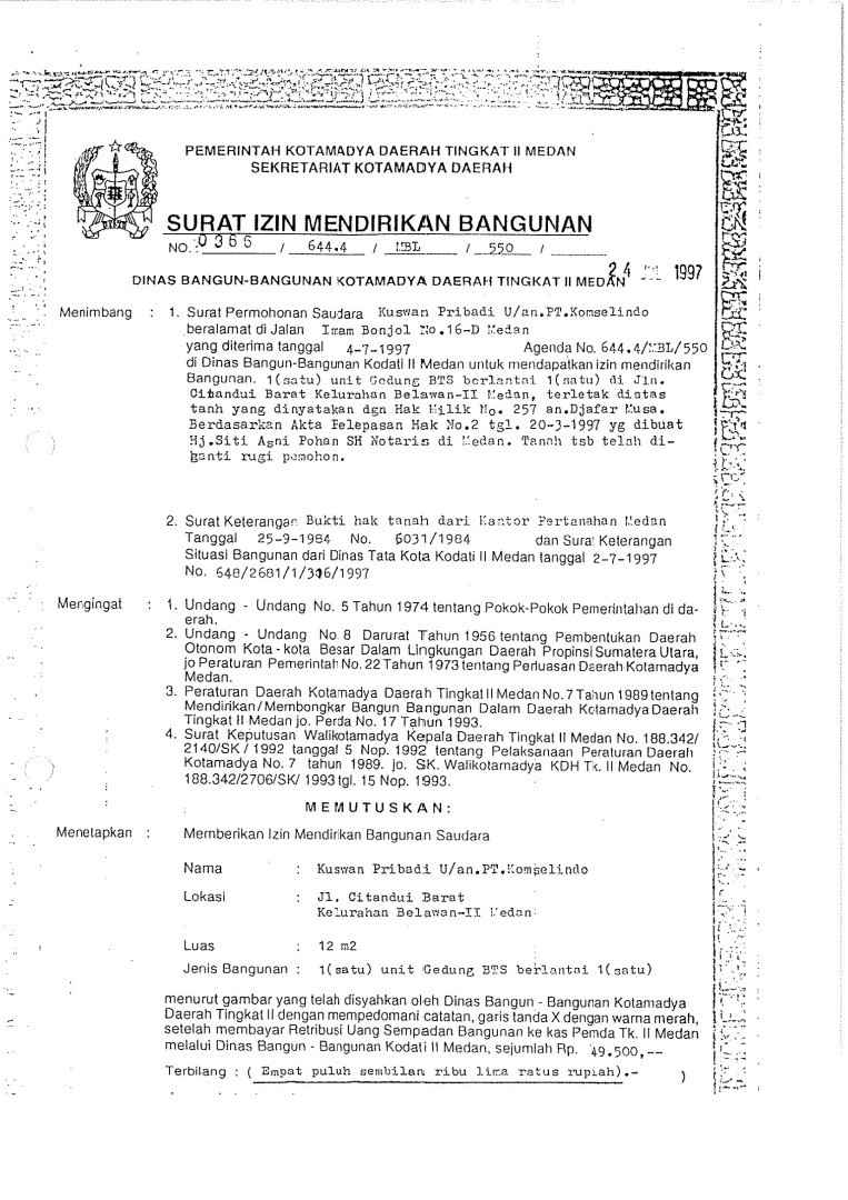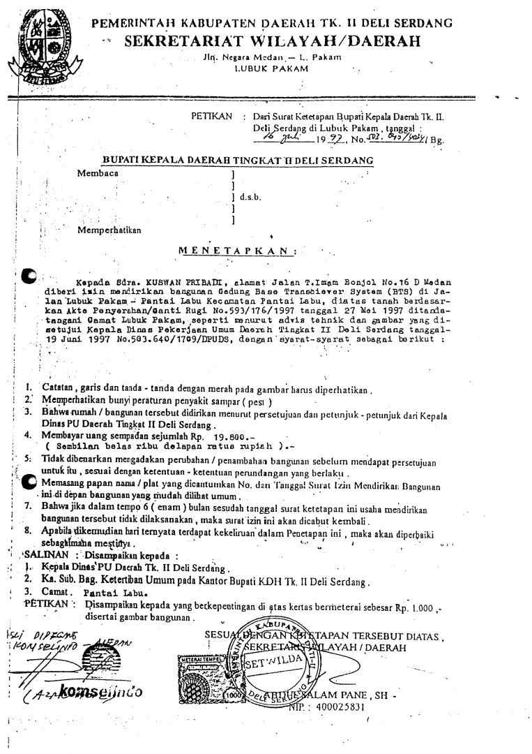 Saat ini proses pengurusan IMB lama menjadi PBG sedang diurus oleh pihak PT TBIG di Dinas DPMPTSP Kabupaten Deli Serdang menurut pihak TBIG yang tidak ingin disebutkan namanya.