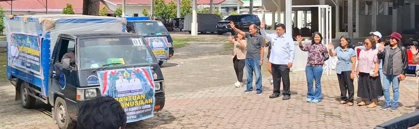 RakyatPoat.id, Samosir, – Bupati Samosir, Vandiko Timotius Gultom, melepas tim bantuan sosial untuk korban musibah banjir dan longsor yang melanda Kabupaten Tapanuli Tengah dan Kota Sibolga. Pelepasan berlangsung di Halaman Rumah Dinas Bupati Samosir pada Sabtu, 6 Desember 2025.