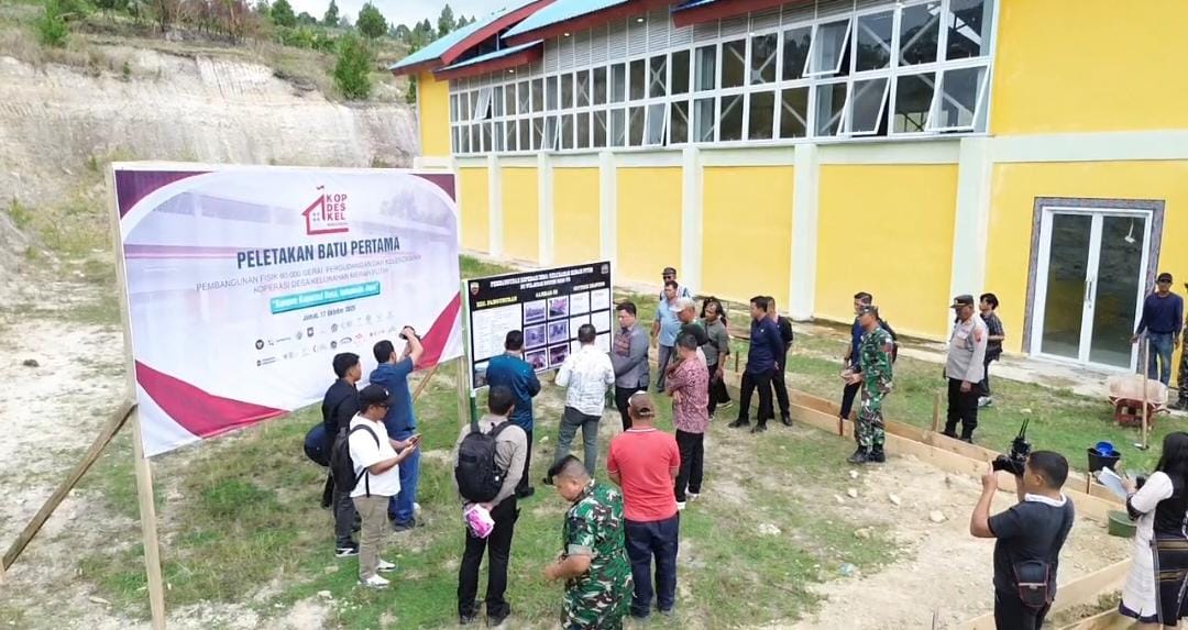 Peletakan batu pertama dilakukan oleh Menteri Koperasi Ferry Juliantono, Menteri Desa Yandri Susanto, Wakil Panglima TNI Jenderal Tandyo Budi Revita, dan Direktur Utama PT Agrinas Pangan Nusantara Joao Angelo De Sousa Mota.