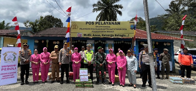 RakyatPost.id, Salak.,– Pastikan Mudik Aman Keluarga Bahagia terlaksana dengan maksimal Kapolres Pakpak Bharat Bersama Forkopimda Kab. Pakpak Bharat, Ketua Bhayangkari Cabang Pakpak Bharat, PJU serta pengurus Bhayangkari kunjungi Pos Pengamanan di Takal Lae Kecamatan Kerajaan Dan Pos Pelayanan Sibande di Kecamatan STU Jehe Kabupaten Pakpak Bharat, Selasa siang ( 17/03/2026 )