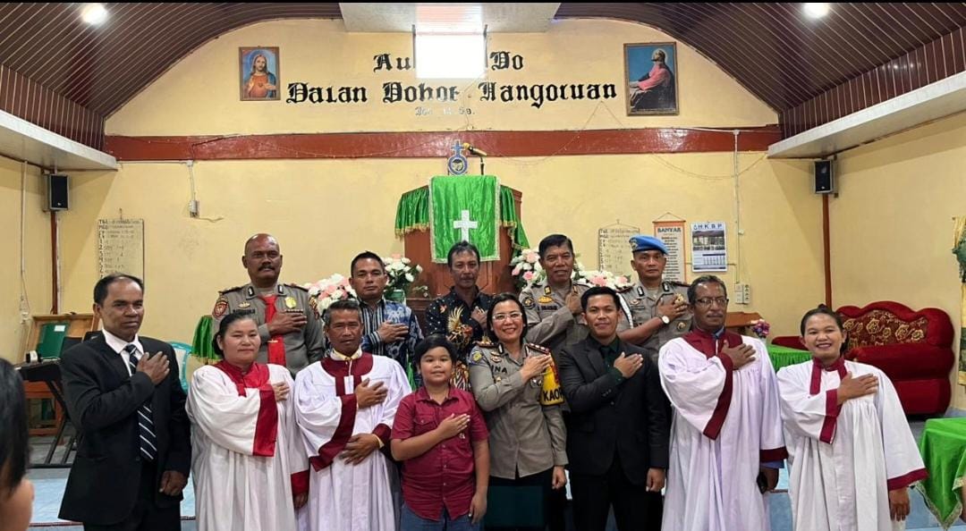 RakyatPost.id, Samosir, – Kapolres Samosir AKBP Rina Sry Nirwana Tarigan, S.I.K., melaksanakan kunjungan sekaligus mengikuti Ibadah Minggu Gereja bersama umat HKBP Bonandolok Desa Bonan Dolok Kecamatan Sianjur Mulamula Kabupaten Samosir, Minggu (8/2/2026) sekitar pukul 11.00 WIB.
