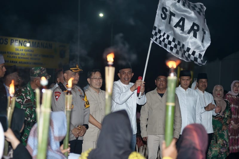 “Bismillahirrahmanirrahim, atas nama Gubernur Sumatera Utara, saya selaku Penjabat Sekretaris Daerah Provinsi Sumatera Utara dengan resmi melepas Pawai Obor dan Gema Takbir Kabupaten Serdangbedagai, dalam rangka memeriahkan malam 1 Syawal 1447 Hijriah,” ucap Pj Sekdaprov Sumut Sulaiman Harahap, saat melepas pawai di Alun-alun Masjid Agung Serdangbedagai, Jalan Lintas Medan–Tebingtinggi, Kecamatan Teluk Mengkudu, Kabupaten Serdangbedagai (Sergai), Jumat (20/3/2026).