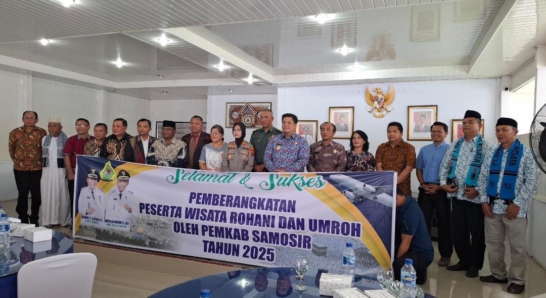 RakyatPost.id, Samosir, – Pemerintah Kabupaten Samosir memberangkatkan tujuh orang tokoh agama dari berbagai denominasi gereja dan umat Muslim untuk melaksanakan perjalanan rohani ke tanah suci masing-masing. Pemberangkatan dilakukan langsung oleh Bupati Samosir Vandiko Timotius Gultom, didampingi Wakil Bupati Ariston Tua Sidauruk di Rumah Dinas Bupati Samosir, Jumat (7/11/2025).