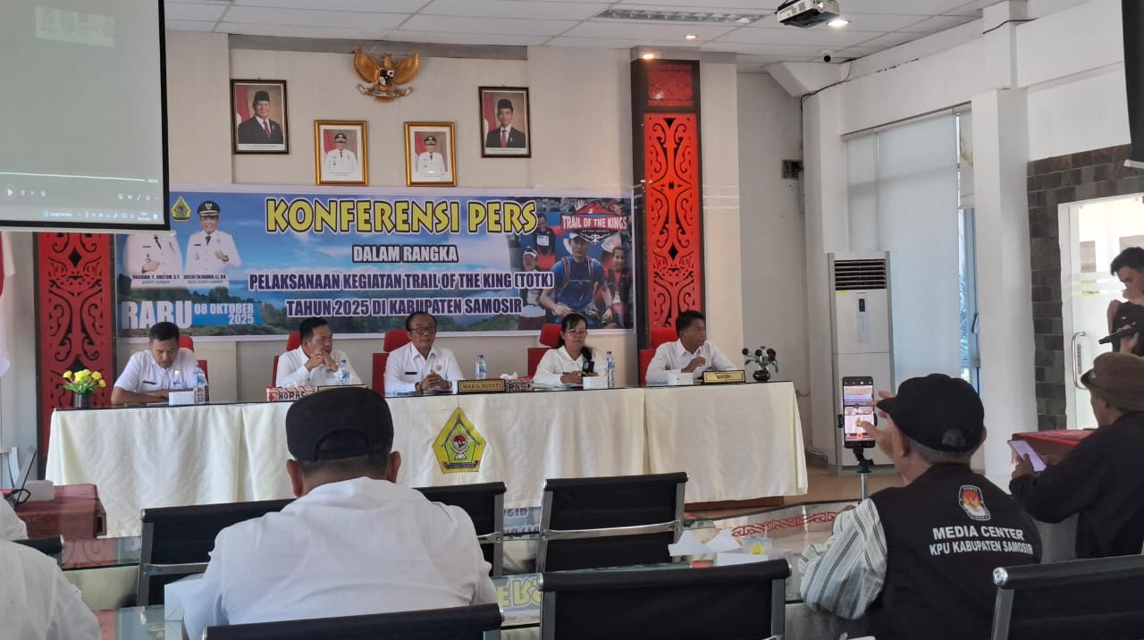 RakyatPost.id, Samosir, – Pemkab Samosir Rabu 8 Oktober 2025, gelar Konferensi pers Trail of The King 2025 di Aula Kantor Bupati Samosir, Rianiate, Kec. Pangururan. Konferensi Pers Trail of The King 2025 di Kabupaten Samosir merupakan bagian dari rangkaian kegiatan untuk mempromosikan event trail berskala internasional yang diselenggarakan di Caldera Toba, Kabupaten Samosir, 17 – 19 Oktober 2025.