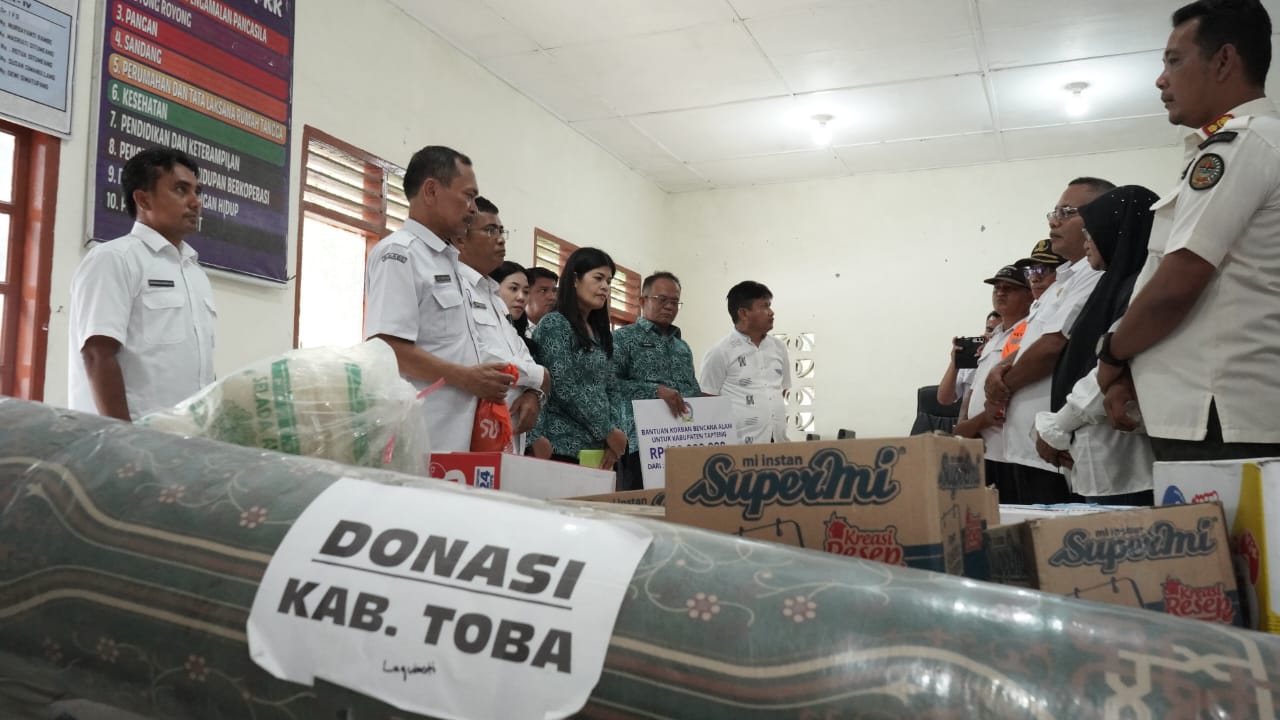 Adapun bantuan yang diserahkan oleh Pemkab Toba adalah pakaian bekas layak pakai 12 karung, beras 500 kilogram, gula pasir 25 kilogram, supermie 30 dus, popmie 5 dus, roti ATB 3 dus, minyak goreng 2 dus, air mineral 4 dus, tikar 1 buah, deterjen dan shampo 1 dus, mie hun 2 bal, kacang hijau 10 kilogram dan uang tunai sebesar Rp 50 juta rupiah.(Ludman Silaen/red)