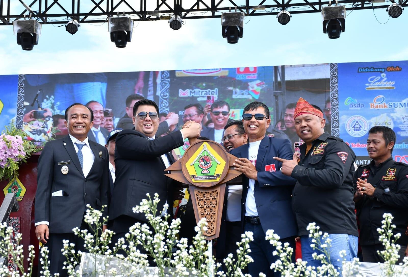 Cenderamata podium yang berlogo Pemkab Samosir tersebut diserahkan oleh Ketua PSBI Wilayah Samosir, Perry Simbolon, dan diterima oleh Bupati Vandiko Timotius Gultom dan Wakil Bupati Samosir Ariston Tua Sidauruk.