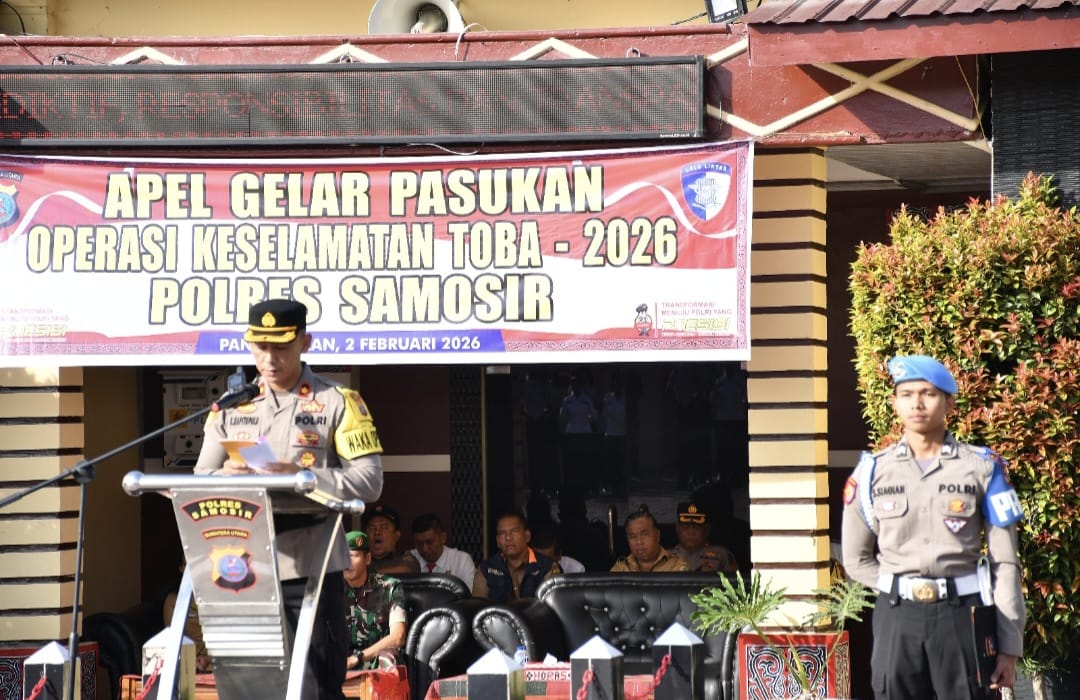 RakyatPost.id, Samosir, – Polres Samosir menggelar Apel Gelar Pasukan dalam rangka Kesiapan Akhir Operasi Keselamatan Toba 2026. Apel yang berlangsung di Lapangan Mako Polres Samosir ini diikuti oleh personel gabungan dari Polres Samosir, TNI, Dinas Perhubungan, Satuan Polisi Pamong Praja, Badan Penanggulangan Bencana Daerah (BPBD), serta instansi terkait lainnya, Senin (2/2/2026).