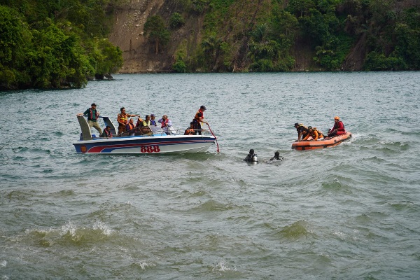 Setibanya di lokasi kejadian, Wakil Bupati Toba mengkoordinasikan tim pencari korban yang terdiri dari Basarnas, BPBD dan tim penyelam dari PT. Regal Spring Indonesia. Berdasarkan keterangan yang disampaikan tim Basarnas, proses pencarian terkendala karena kedalaman palung Danau Toba disekitar lokasi kejadian mencapai hingga 150 meter, kedalaman itu diluar batas kemampuan tim penyelam.