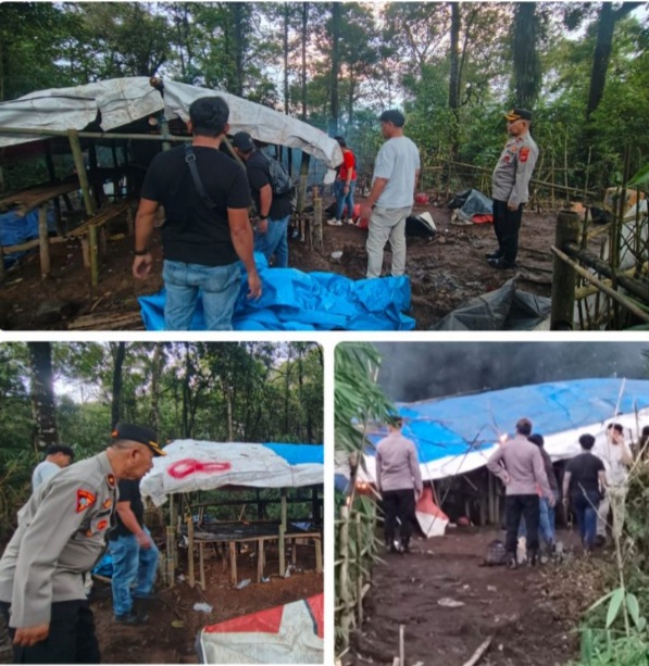 Setelah mengamankan barang bukti juga 3 pria yang ada di lokasi, polsek pancur batu membakar 5 gubuk yang diduga dijadikan tempat untuk mengkonsumsi narkoba.