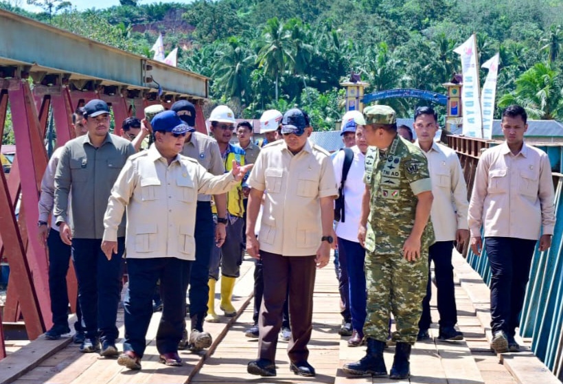 RakyatPost.id, Medan,– Gubernur Sumatera Utara (Gubsu) Muhammad Bobby Afif Nasution mendampingi kunjungan Presiden RI Prabowo Subianto, meninjau progres pembangunan jembatan di Desa Garoga, Kecamatan Batangtoru, Kabupaten Tapanuli Selatan (Tapsel), yang hancur diterjang banjir bandang bersama ratusan rumah, pada musibah bencana akhir November lalu.