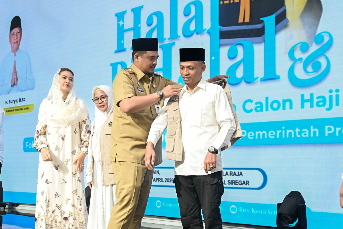 Pesan tersebut disampaikan Bobby Nasution saat menghadiri acara Halalbihalal dan Tepung Tawar Jemaah Calon Haji Tahun 2026 di Aula Raja Inal Siregar , Kantor Gubernur Sumut, Jalan Pangeran Diponegoro Nomor 30 Medan, Senin (20/4/2026).