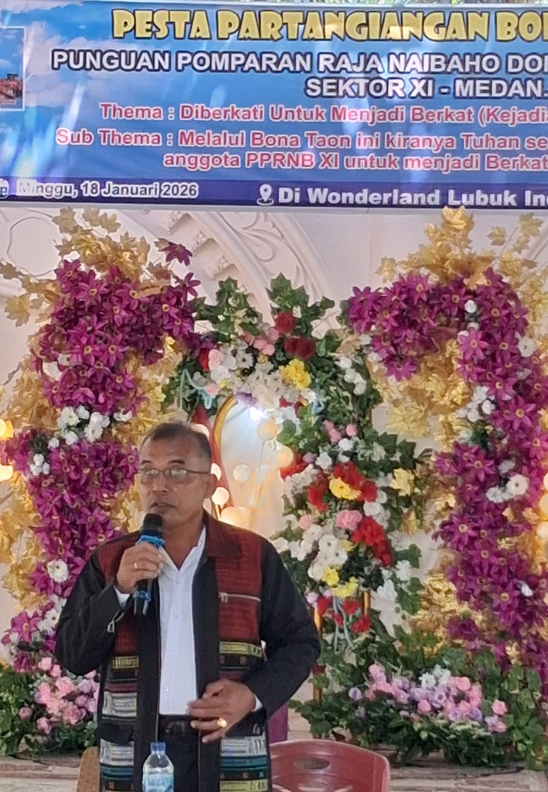 Ketua PPRNB Sektor XI Padang Bulan Medan Hokden Naibaho ( A. Avista) dakam sambutannya menyampaikan selanat tahun baru kepada semua pomparan Raja Naibaho dan boru Sektor XI Padang Bulan Medan yang saat ini hadir pada perayaan pesta Bona Taon 2026.