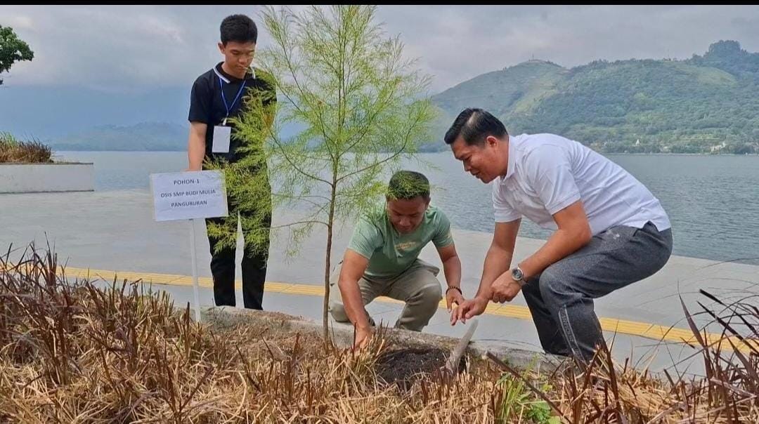 RakyatPost.id, Samosir, – OSIS SMP Budi Mulia Pangururan menggelar kegiatan penghijauan lingkungan melalui penanaman pohon dan kegiatan kebersihan di kawasan Water Front City Pangururan. Kegiatan ini dirangkai dengan pagelaran budaya dan hiburan atraktif oleh siswa-siswi SMP Budi Mulia, yang dihadiri Kepala Sekolah SMP Budi Mulia, bapak ibu guru, dan jajarannya, Jumat (30/1/2026).